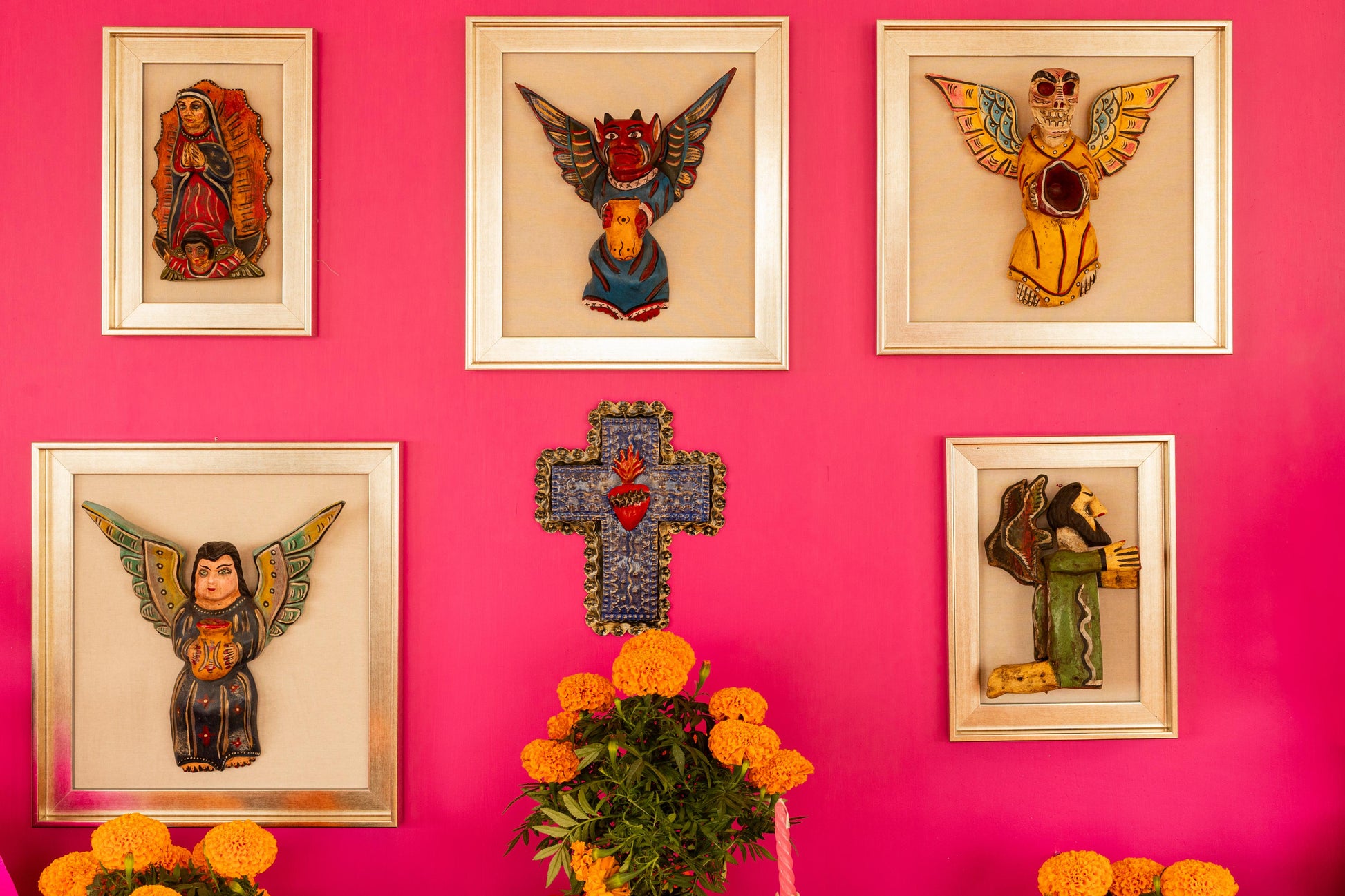 Cinco piezas devocionales y festivas que exploran la dualidad mexicana: luz y sombra, rito y juego. Al estar enmarcadas, funcionan como muro curatorial listo para instalar en hogares, hoteles o espacios editoriales, conservando la memoria popular en clave contemporánea.