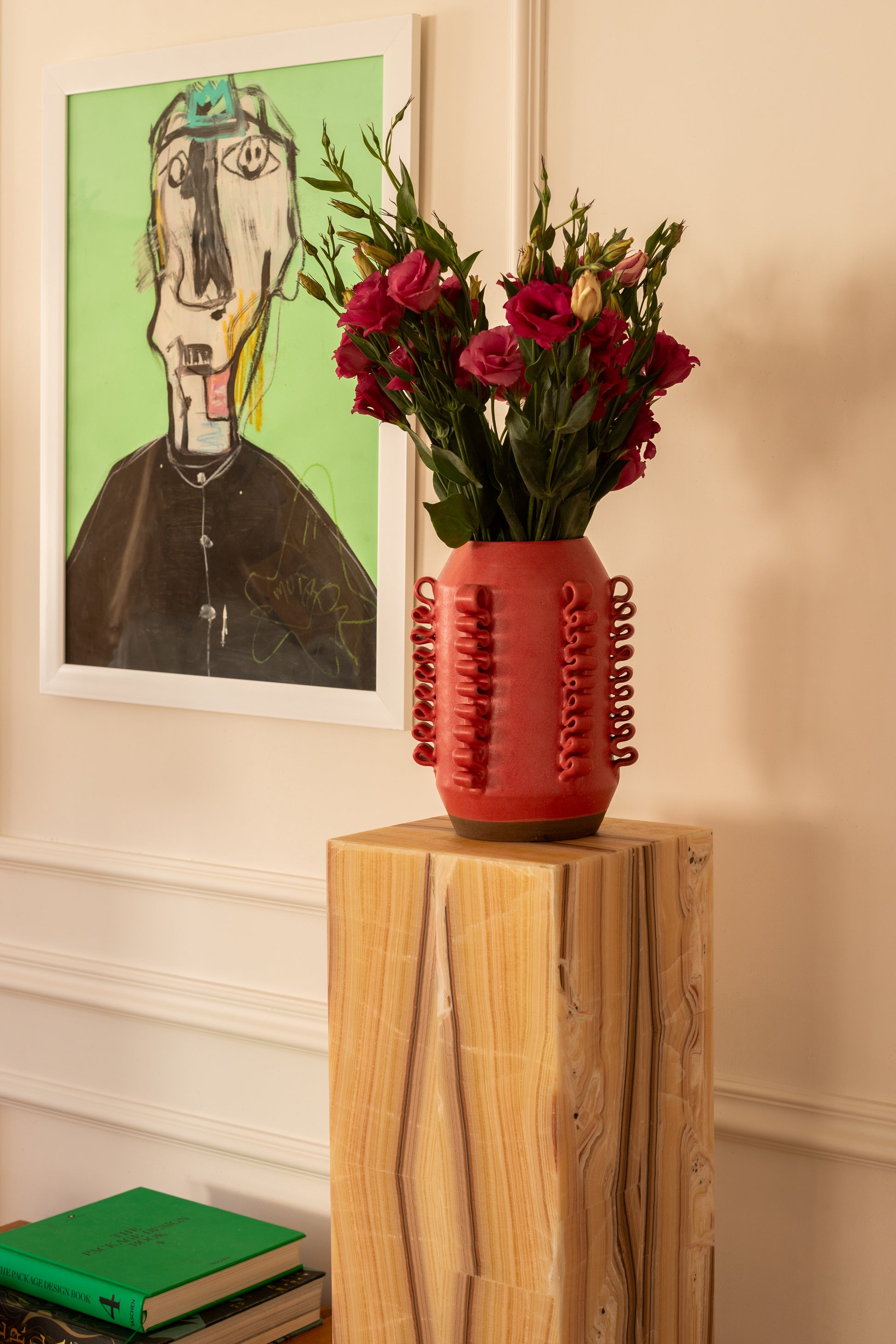 “Rosa Carmesí” es una vasija que respira alegría contenida.