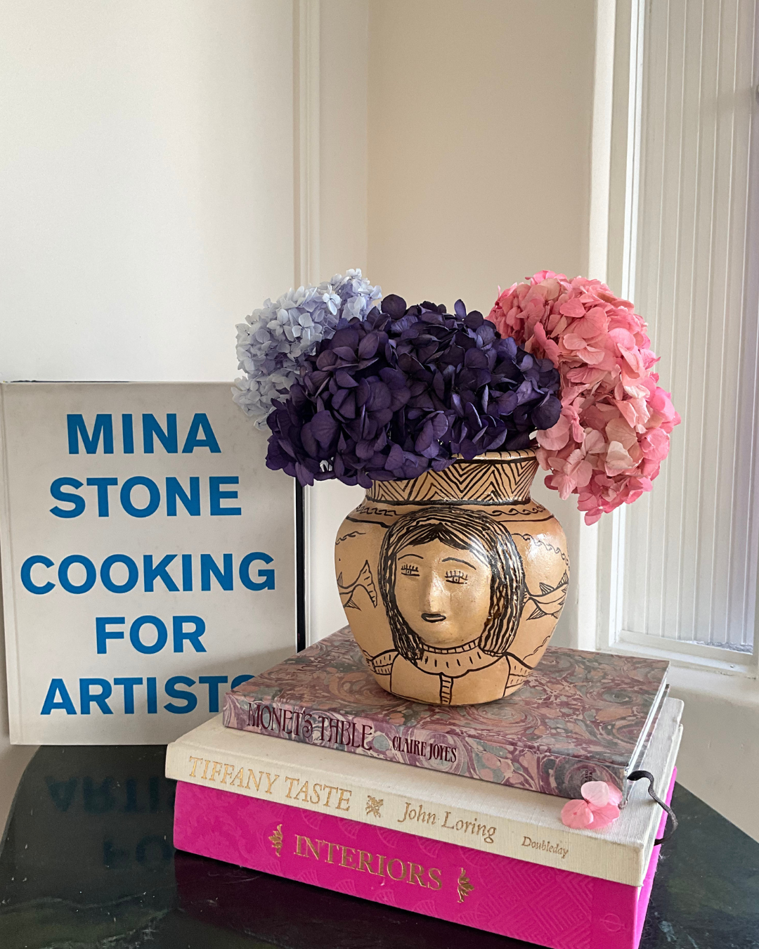 Tipo de flor y color: Hortensias preservadas en tonos violeta profundo, lila suave y rosa empolvado. (No requiere agua ni exposición directa al sol.)