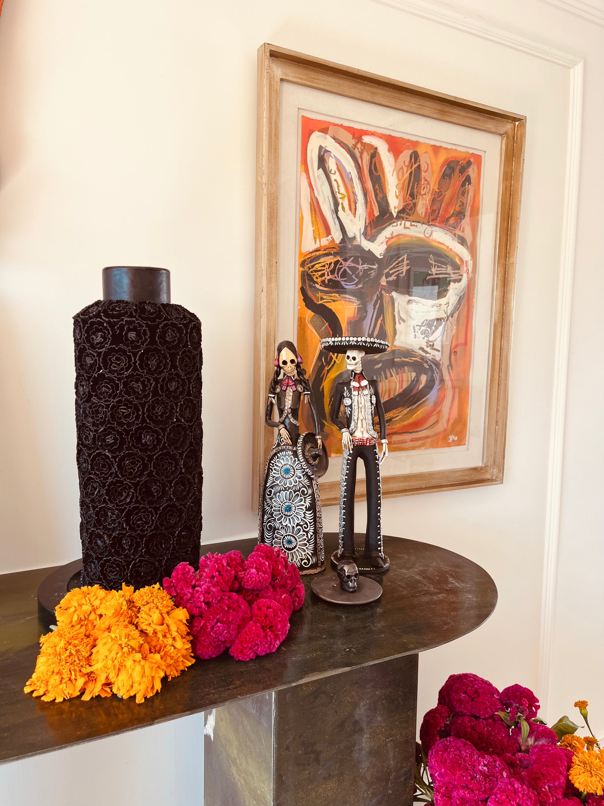Inspiradas en el espíritu del Día de Muertos y en el folclor mexicano, estas piezas reimaginan al mariachi como símbolo de alegría eterna: un puente entre el mundo de los vivos y el de los que regresan para bailar una última canción.