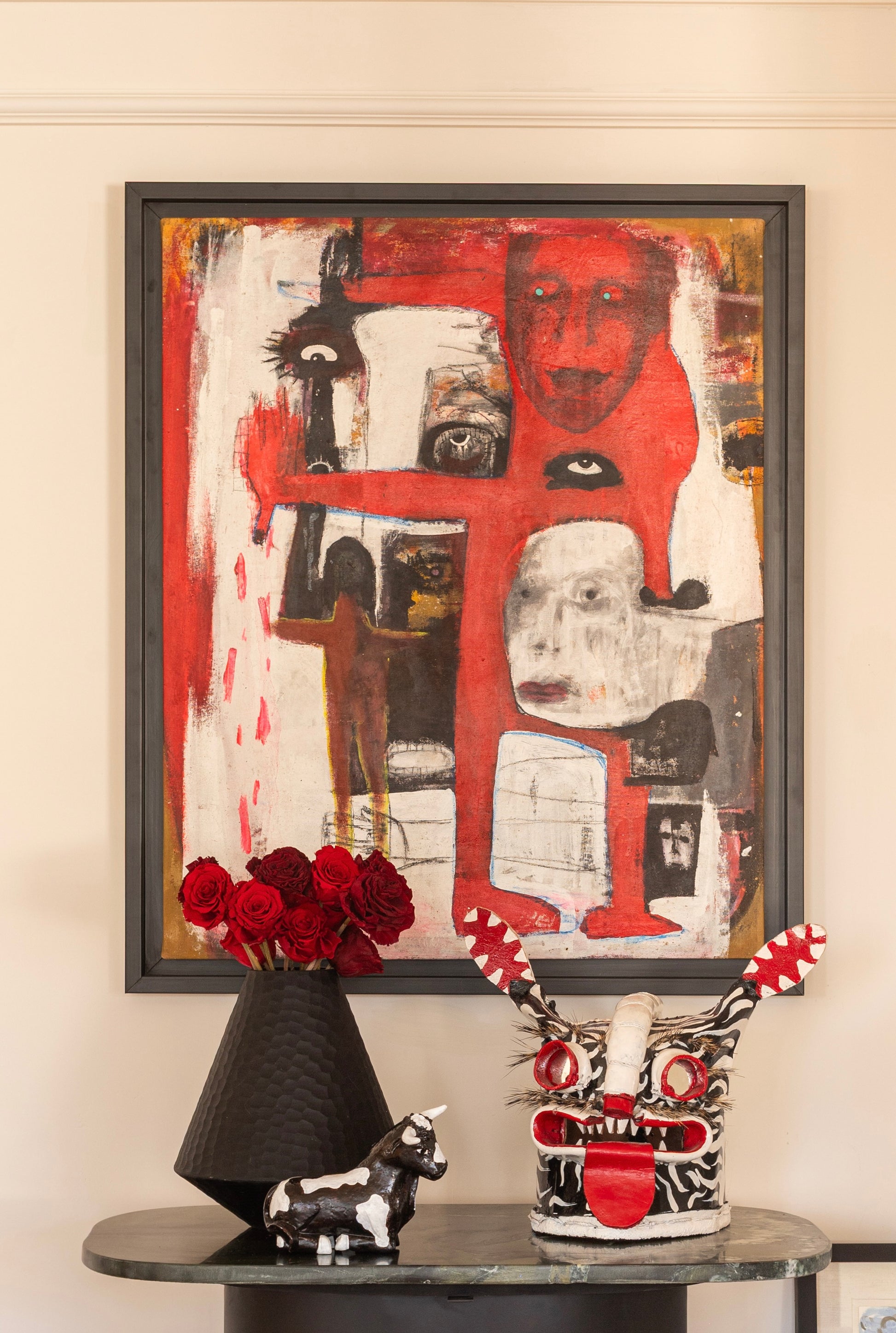 La obra conjuga lo primitivo y lo urbano, actuando como un grito visual y espiritual.