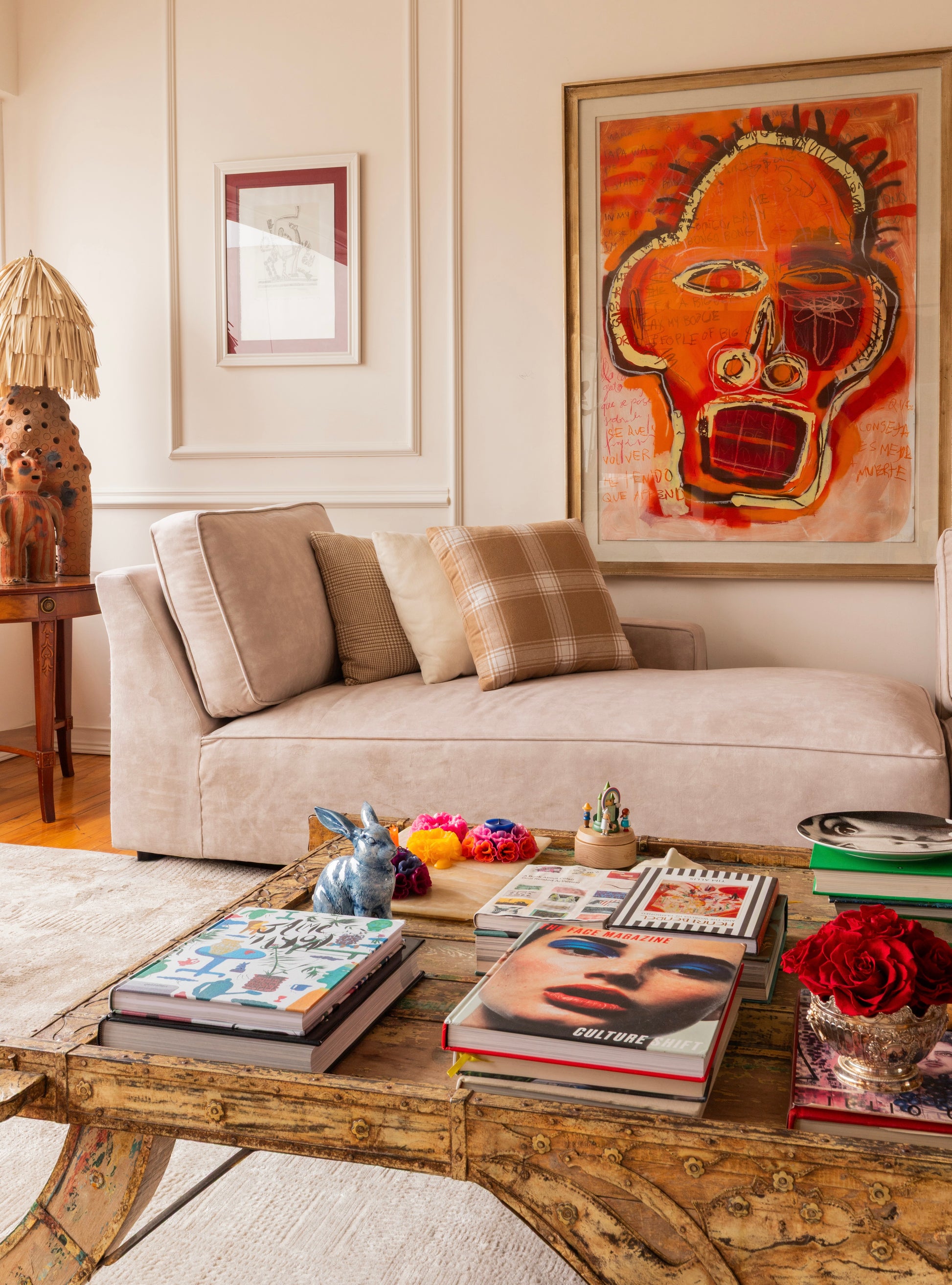 Su estructura conserva los relieves, clavos y pátinas que narran siglos de historia: marcas del tiempo que hoy dialogan con libros, objetos y flores.