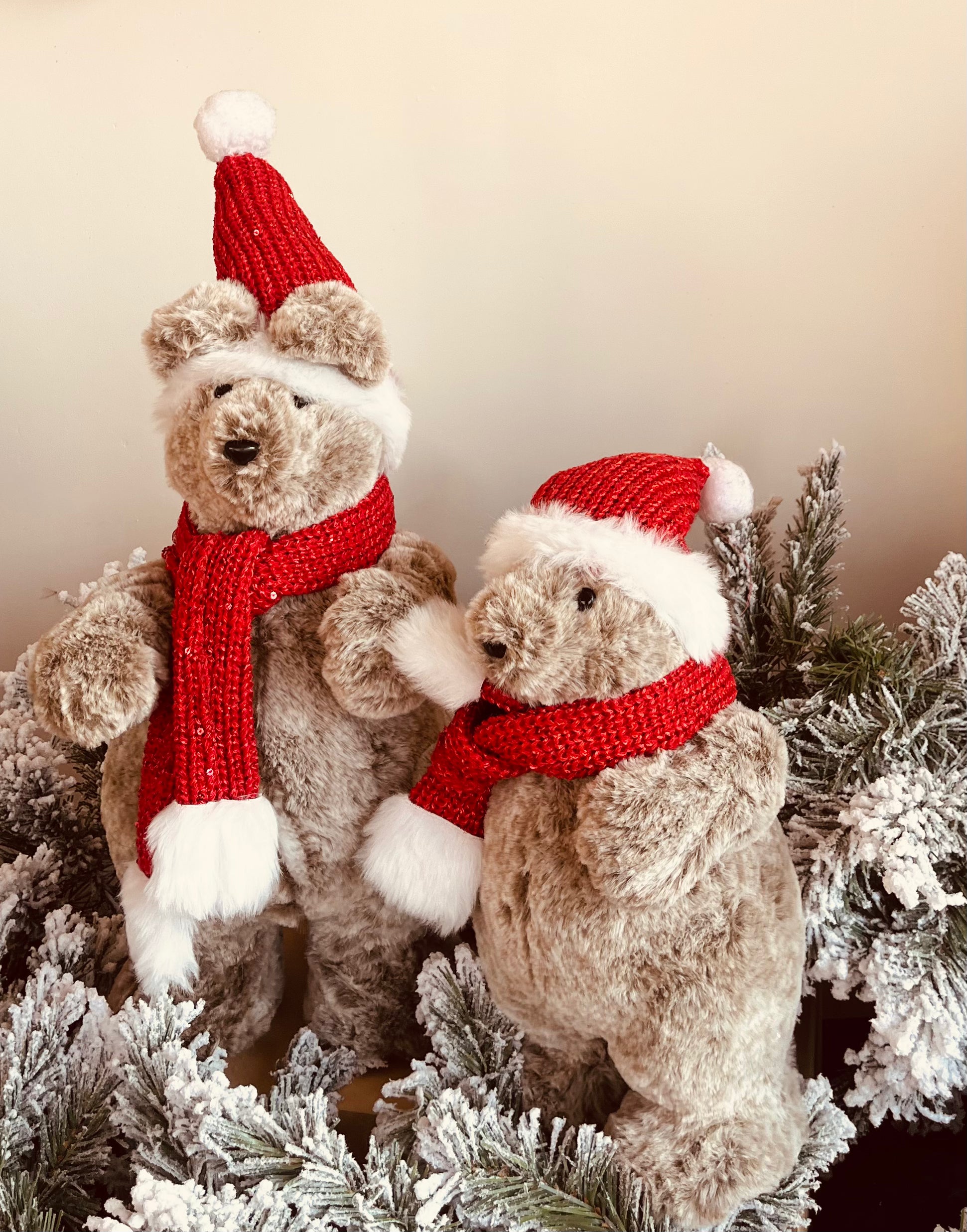 Pareja de osos invernales. Cada figura representa la calidez y ternura de la temporada, con detalles cuidadosamente confeccionados por artesanos mexicanos. Su diseño combina el encanto del bosque con una estética contemporánea, perfecta para decorar mesas, aparadores o rincones acogedores durante las fiestas.